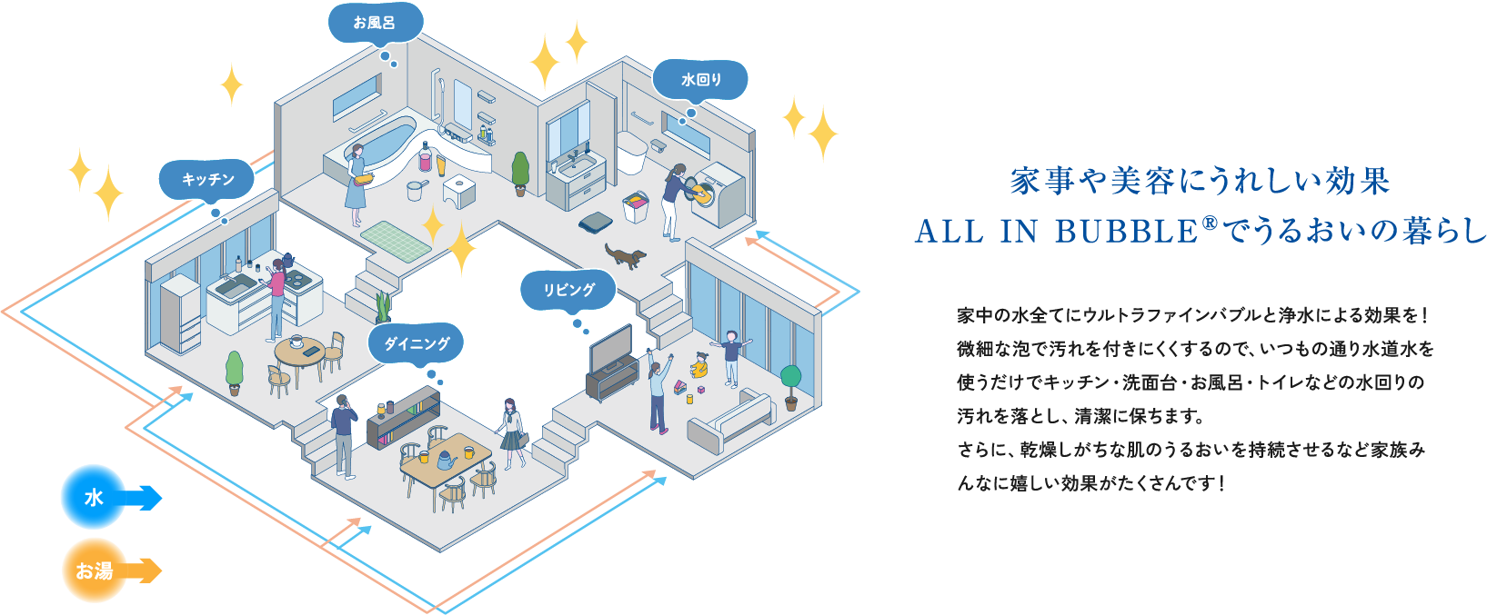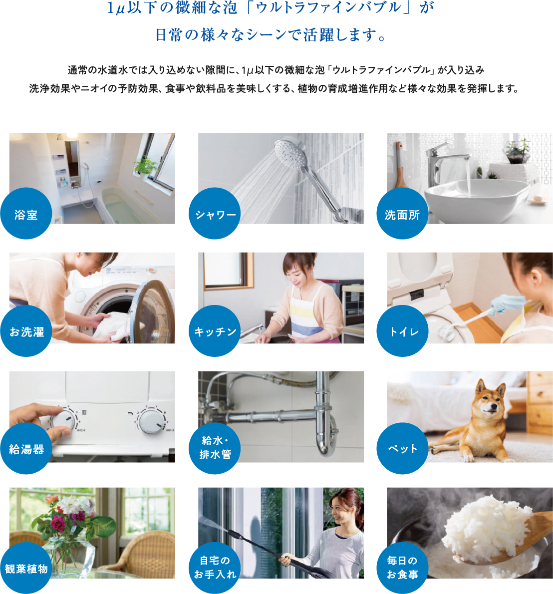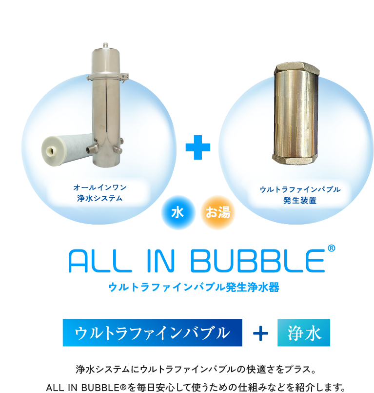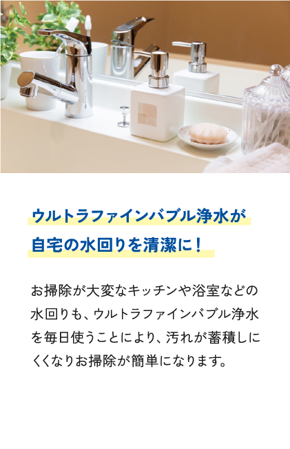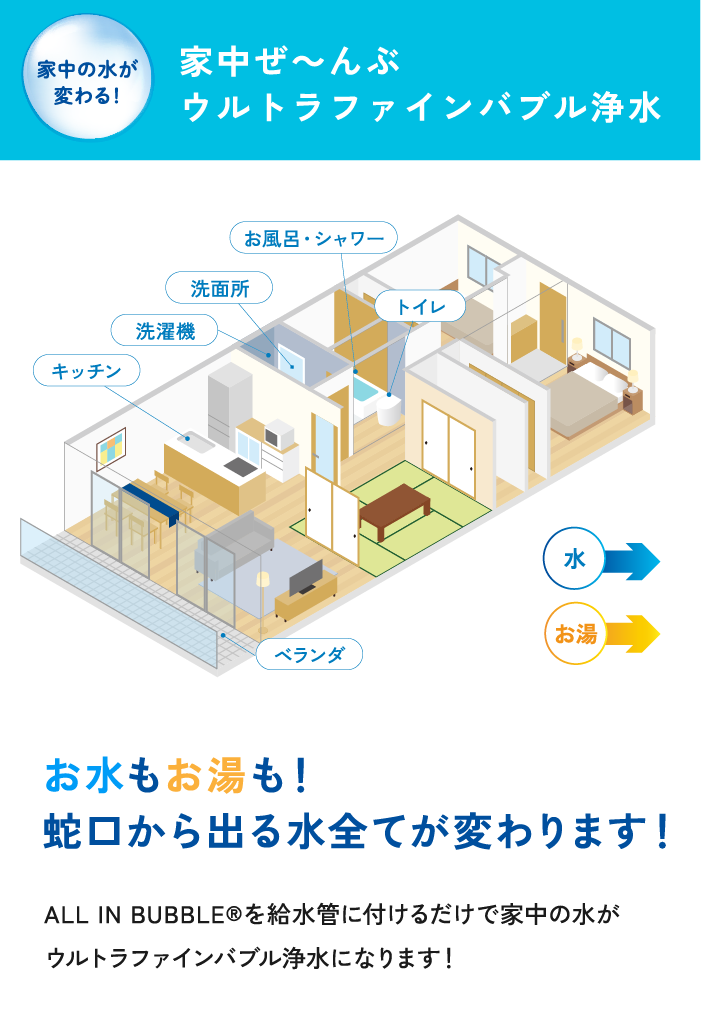家中の水全てに「ウルトラファインバブル」と浄水による効果